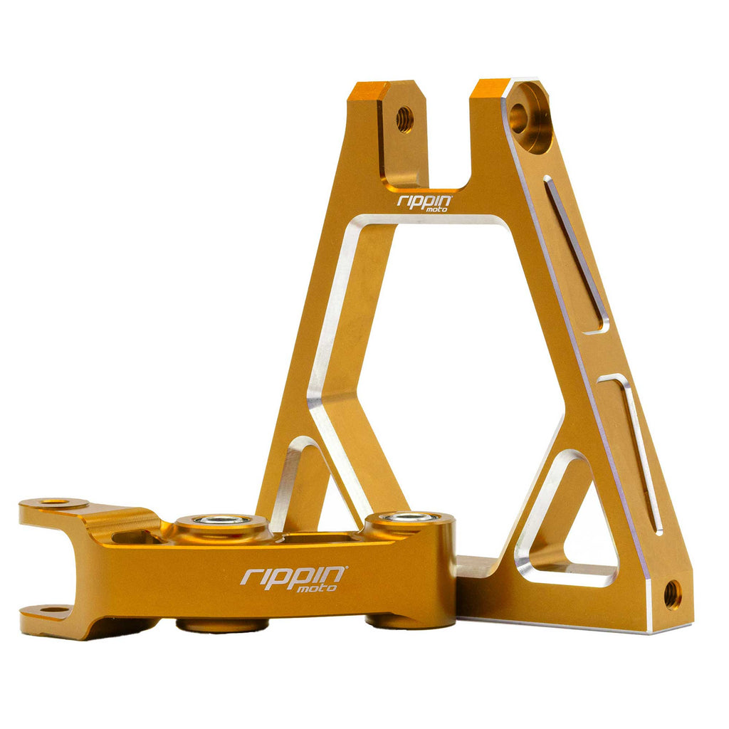 Transform your Surron Light Bee X or Segway X160/X260 with our Rear Suspension Linkage Kit, expertly engineered from high-strength 6061-T6 aircraft-grade aluminum. This robust upgrade replaces the fragile OEM cast-molded suspension, which is prone to failure in tough conditions, giving your e-moto the strength it needs to conquer any terrain. Designed with rib-reinforced corners for maximum torsional strength and enhanced durability, this kit improves rear suspension response and delivers a more controlled, smoother ride. Whether you're tearing through rugged trails or pushing the limits on a race track, this linkage kit will elevate your bike's performance and durability.